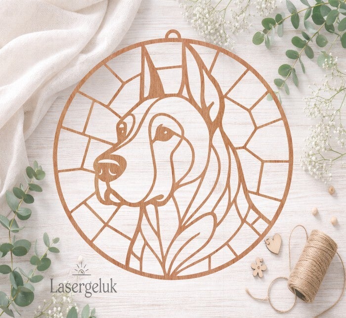 Houten DIY Suncatcher â Deense Dog | Glas-in-Lood Decoratie - 0046